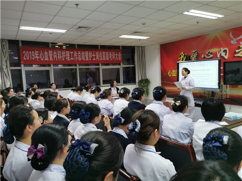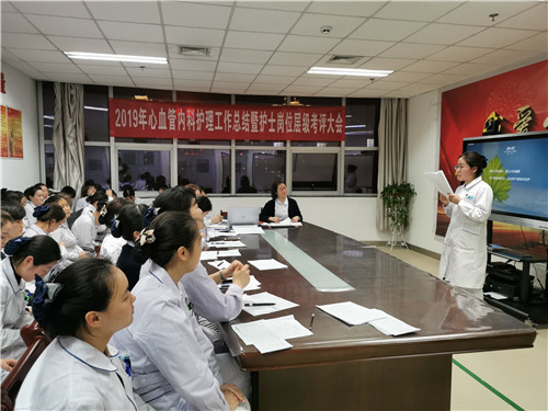 首先,进行护士层级晋升考评工作。科室根据医院《临床护理岗护士层级考核及晋级标准》的指导意见,修定了《心血管内科护士岗位管理制度》及《层级考核晋级标准》,每位护理人员在会上做了岗位述职,向科室展示自己2019年度的“成绩单”,接受同事们的检验。
