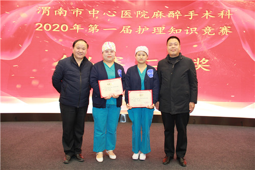 本次知识竞赛由护理部高亚梅主任、麻醉手术科李万鹏副主任、苗良生副主任、党支部任钰书记、麻醉手术科王变云护士长、李雯副护士长担任评委。