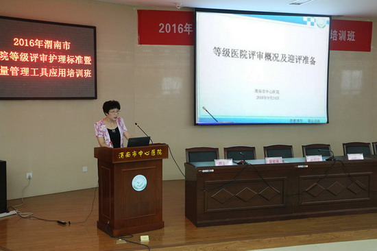 为了深入贯彻落实《综合医院评审标准实施细则(2011版)/(2012版)》和《优质护理服务评价细则(2014版)》等标准,扎实推进全市护理工作质量持续改进,全面提升护理工作内涵建设,9月24日,在渭南市卫计局和各兄弟医院的支持下,由渭南市护理质控中心、护理学会主办,我院具体承办的全市医院等级评审护理标准暨质量管理工具应用培训班在我院学术报告厅成功举办,来自全市41家医院及我院护理人员共计360余名参加了此次培训。培训会由我院护理部副主任高亚梅主持。