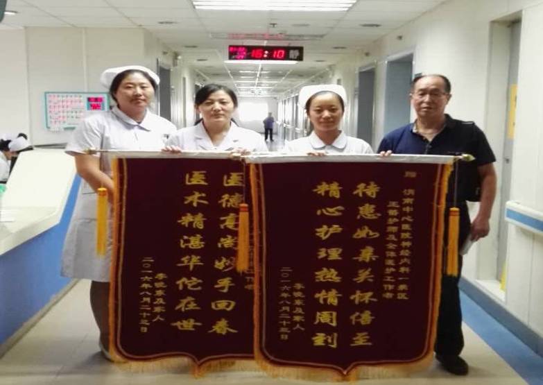 近日,我院神经内科一病区来了一位患者家属,专程来为卫晓红大夫和护士长石小娅送来了表达谢意的锦旗。