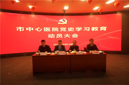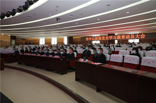 3月24日下午,市中心医院在三楼学术报告厅组织召开党史学习教育动员大会,对全院开展党史学习教育工作进行安排部署。院领导班子全体成员、全院中层干部和各支部党员代表200 余人参加会议。