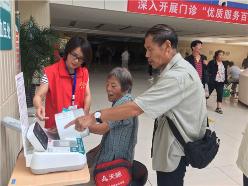 我是门诊爱心志愿服务队第二小组的成员,在参加门诊志愿服务期间,我曾遇到一位五十多岁的患者带妻子来院就诊,因为收费窗口人员较多,他十分焦急的拿着上千元现金来自助机前向我咨询,在帮助他办理了就诊卡并完成挂号后,他又多次特意找我帮他进行后续的充值。每次,我都真诚、热情、耐心服务。这对夫妇临走时不仅表达了对我个人的谢意,更对医院设立志愿服务岗位给予了肯定。