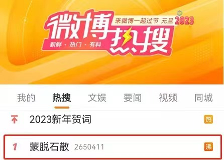 2023年第1天,蒙脱石散突然爆火登上了微博热搜榜第一名