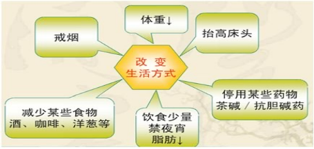 1、一般治疗:在饮食上避免食用高脂肪高糖的食物,日常生活中做到戒烟戒酒,少喝浓茶咖啡等饮料,养成少吃多餐的进食习惯。