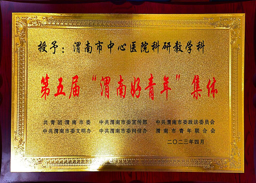4月27日,在“五·四”青年节来临之际,市中心医院科研教学科被共青团渭南市委、市委宣传部、市政法委等多部门评选授予“渭南好青年集体”荣誉称号。