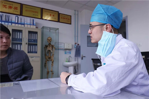 下班了,他仍坐在另外一张桌子前继续和患者谈话。