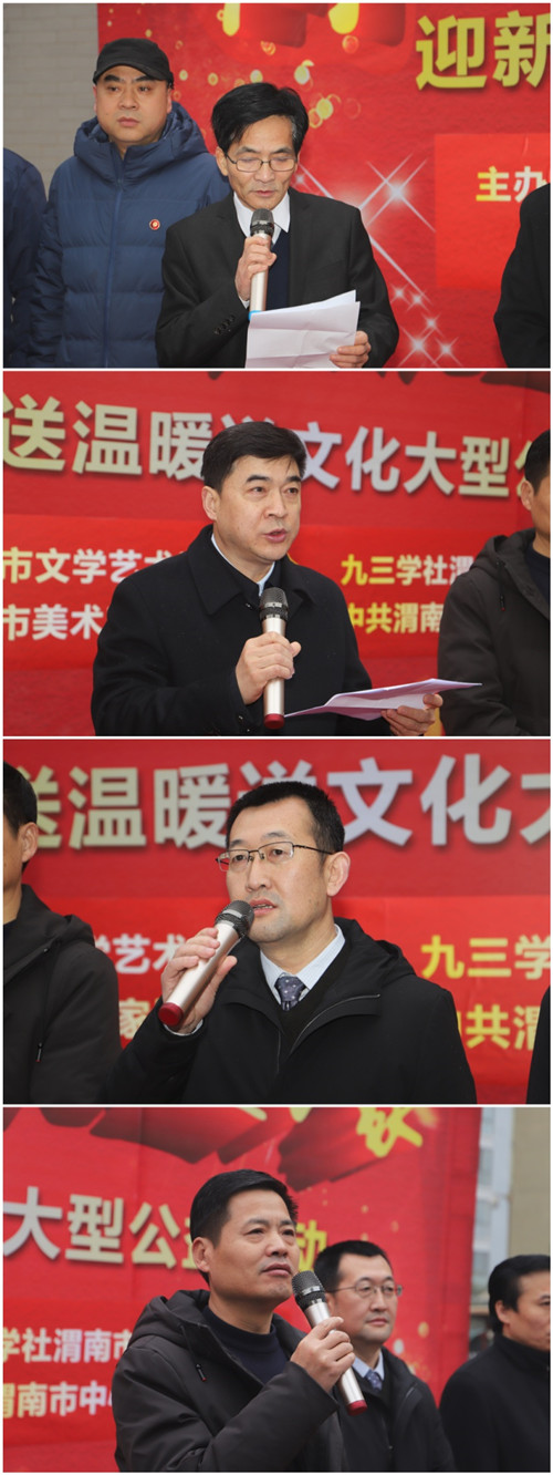本次活动由九三学社渭南市委、市文联、市美协、市中心医院党委联合举办,九三学社市中心医院支社协办。渭南市市场监管局局长、九三学社渭南市委主委王志斌,市文联主席骆苏弟,市中心医院党委副书记党继革出席开幕式并讲话。市中心医院副院长乔梵、九三学社渭南市委驻会副主委王建军、秘书长马文娟、市美协常务副主席党宽阳和书画界专家等15人出席开幕式。九三学社渭南市各支社社员、市中心医院各科室代表共计70余人参加开幕式。开幕式由市中心医院副院长姚建龙主持。