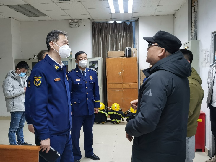 1月18日,国家消防救援局防火监督处副处长王天瑞带队督导检查市中心医院消防安全工作。