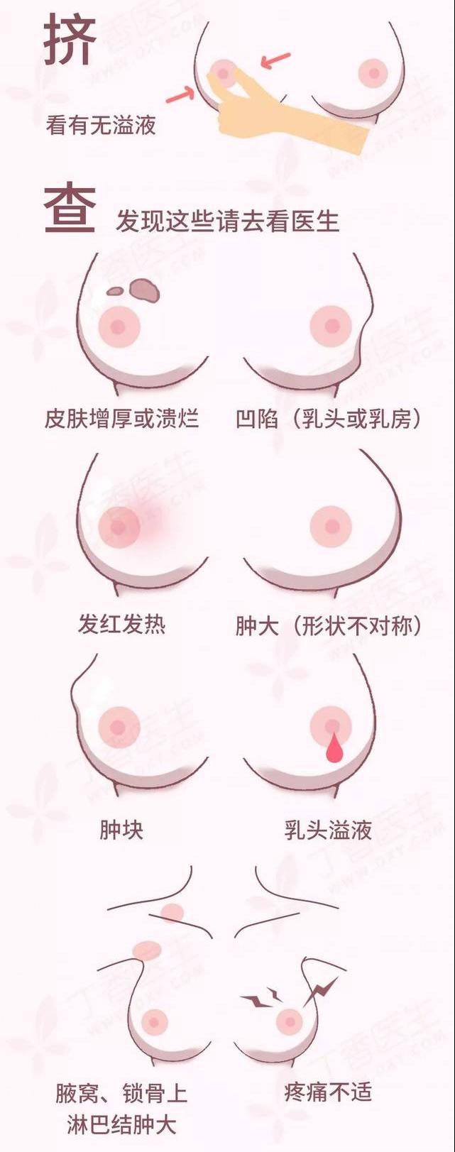 如果发现乳腺有以下变化应及时就诊,专科医生进行检查: