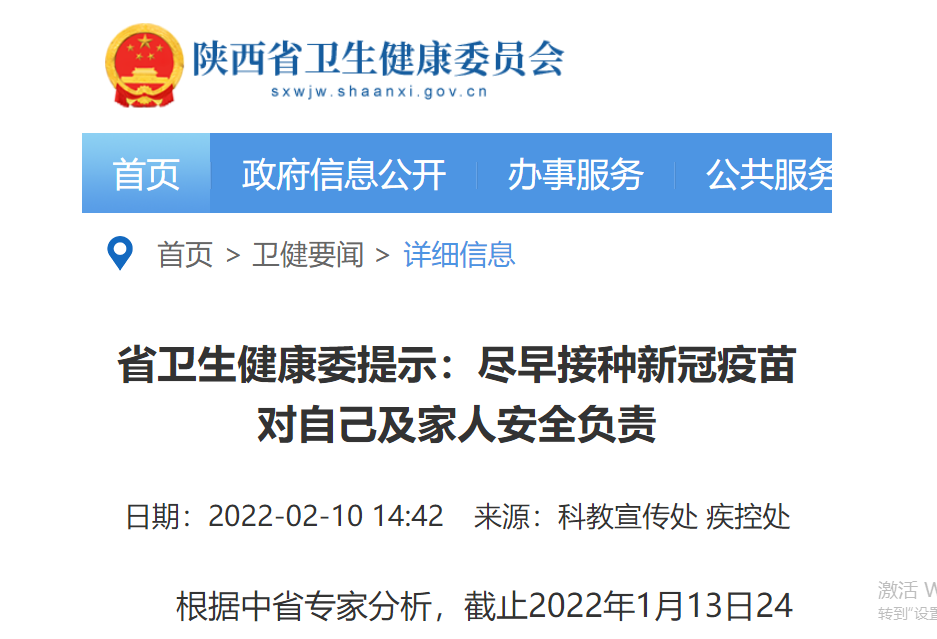 在此,陕西省卫生健康委提示:当前境外新冠肺炎疫情仍在高位,国内多个省份出现聚集性疫情,疫情防控形势依然严峻复杂。接种新冠病毒疫苗可以获得相应免疫力,从而有效降低发病、重症和死亡的风险。每个人作为自己健康的第一责任人,都应该本着对自己、对家人、对社会高度负责的态度,积极接种新冠病毒疫苗,不做旁观者、不当局外人。