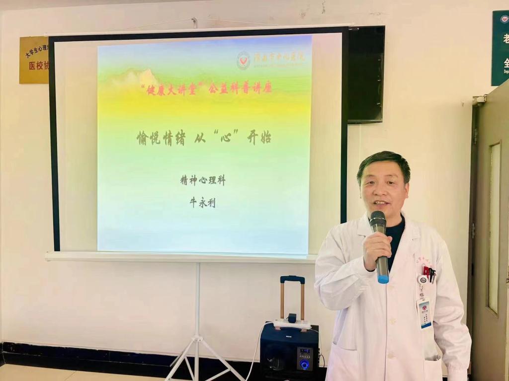 心理健康是健康的重要组成部分,乐鱼在线登录入口精神心理科主任牛永利通过“人的情绪”“情绪的体验”“常见不良情绪”“心理干预与治疗”等四个方面,由浅入深讲解了人的情绪如何产生,情绪对身体的影响,并详细说明了不良情绪如何应对与调节。讲座期间,牛永利积极解答群众提出的问题,为群众进一步了解自身情绪、增强心理健康给予中肯的意见和建议。