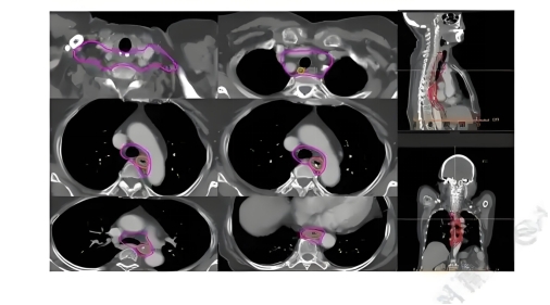 • 定位期:定制身体固定模具,通过CT/PET影像勾画肿瘤靶区。